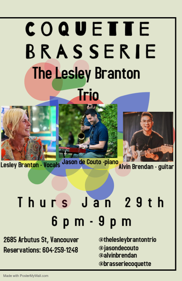 Based in Vancouver, this trio features Lesley Branton (vocals), Jason De Couto (piano) and Alvin Brendan (guitar). Influenced by an array of artists and genres, this trio is passionate about…